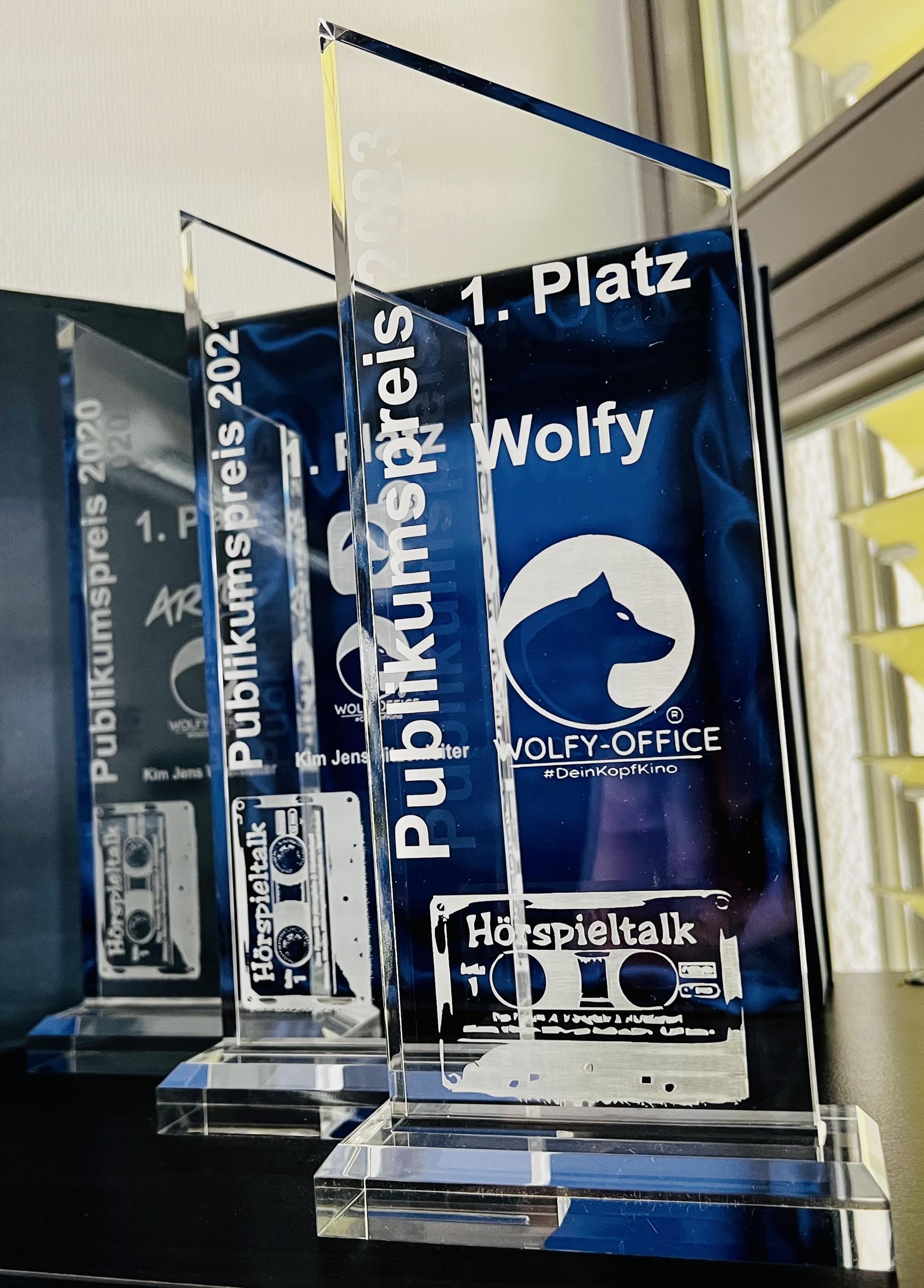Bereits 3 mal wurde ich mit dem Publikumspreis vom Hörspieltalk ausgezeichnet. 2020, als Verleger, für Arzu, 2021, als Regie, für 113 Nachrichten und 2023, als Autor und Regie, für Wolfy.